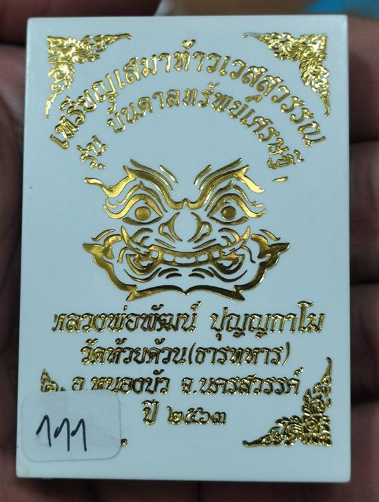 เหรียญเสมาท้าวเวสสุวรรณ รุ่น บันดาลทรัพย์เศรษฐี หลวงพ่อพัฒน์ วัดห้วยด้วน เนื้อทองทิพย์ ตอกโค๊ด ๙ รอบ สร้าง 299 เหรียญ หมายเลข111 |