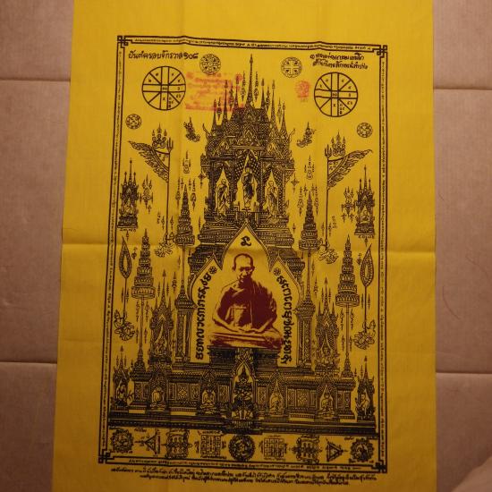 ผืนใหญ่..ขนาด19 X 29 นิ้ว... ผ้ายันต์ครอบจักรวาล 108 หลวงพ่อเกษม รุ่นพุทธคุณ ปี2538 เลข 597 ... 68.9.26 |