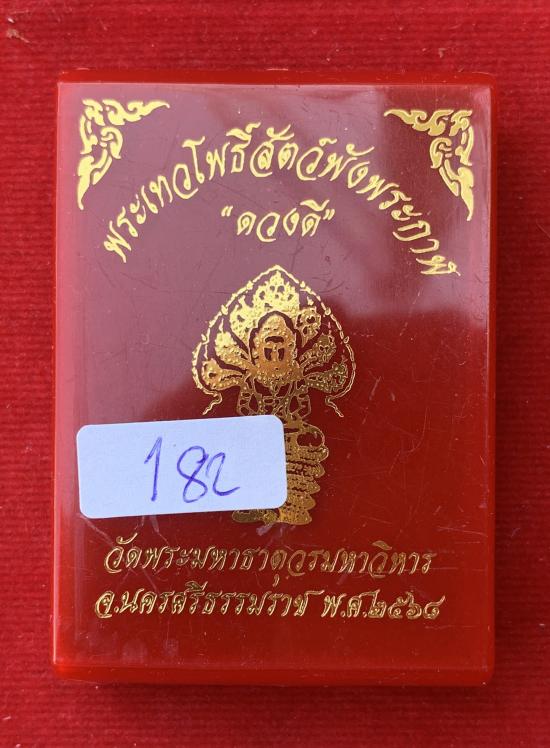 เหรียญพระโพธิสัตว์พังพกาฬ ดวงดี วัดพระมหาธาตุวรวิหาร จ.นครศรีธรรมราช เนื้อทองฝาบาตรลงยาดำ หมายเลข ๑๘๒ |