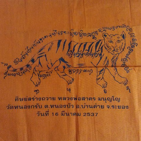 ผ้ายันต์ หลวงพ่อสาคร ศิษย์สร้างถวาย ปี 2537 ขนาด สูงประมาณ 10 นิ้ว กว้างประมาณ 13.5 นิ้ว ครับ |