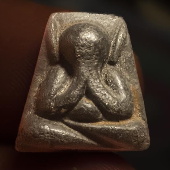 พระปิดตา หน้าภู่-หลังเจียม เนื้อผงคลุกรัก หลวงปู่เหมือน วัดกำแพง ชลบุรี จัดสร้าง ปี2510