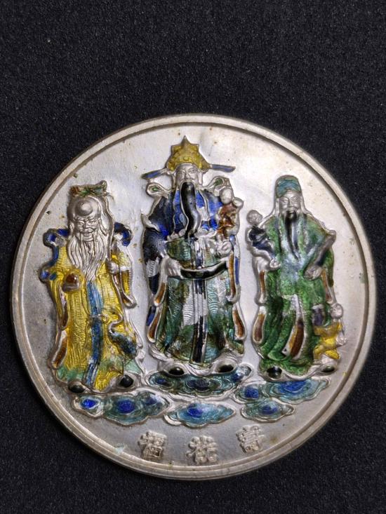 เหรียญเงินลงยา ฮก,ลก,ซิ่ว รุ่นสร้างอุโบสถวัดนก เคาะเดียว 600