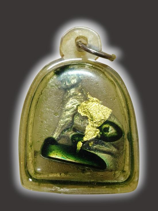 A4087.วัดใจของดี!!! เสือไม่ทราบที่ เลี่ยมเก่าพร้อมสีผึ้งเขียว ปิดทอง เคาะเดียวเเดง |