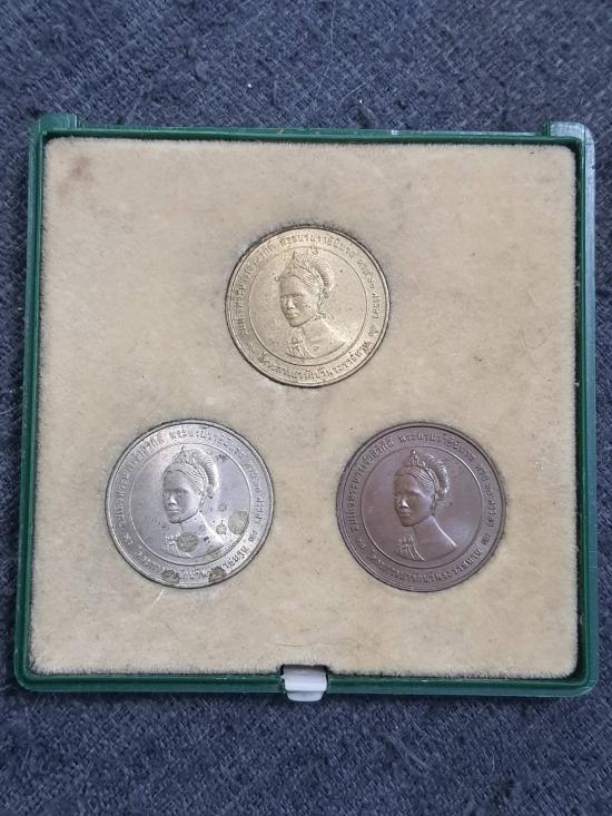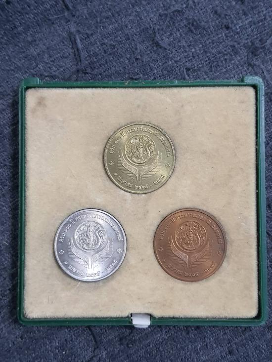 ชุดเหรียญราชินีที่ระลึกครบ100 ปีกระทรวงเกษตรและสหกรณ์ปี พ.ศ.2535 จำนวน3 เหรียญพร้อมกล่องเดิม (ไม่มีฝาครอบกล่อง)