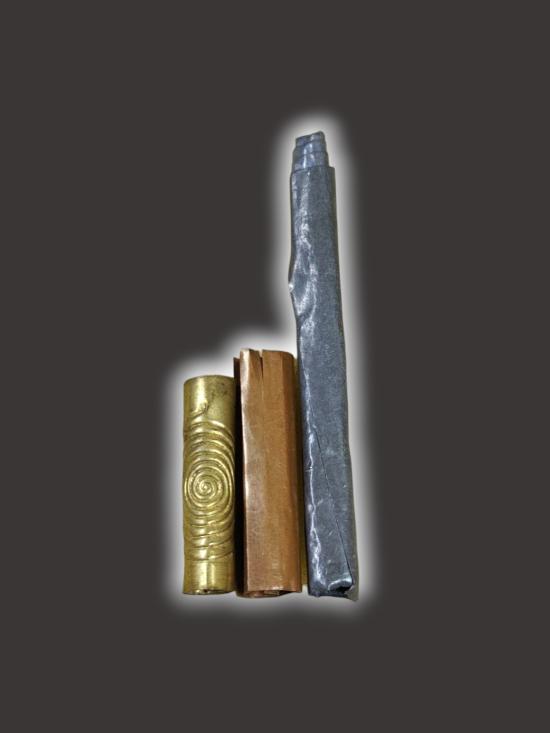 A4096.ของดี!! ตะกรุดเก่า 3 ดอก ไม่ทราบที่ เคาะเดียวเเดง |