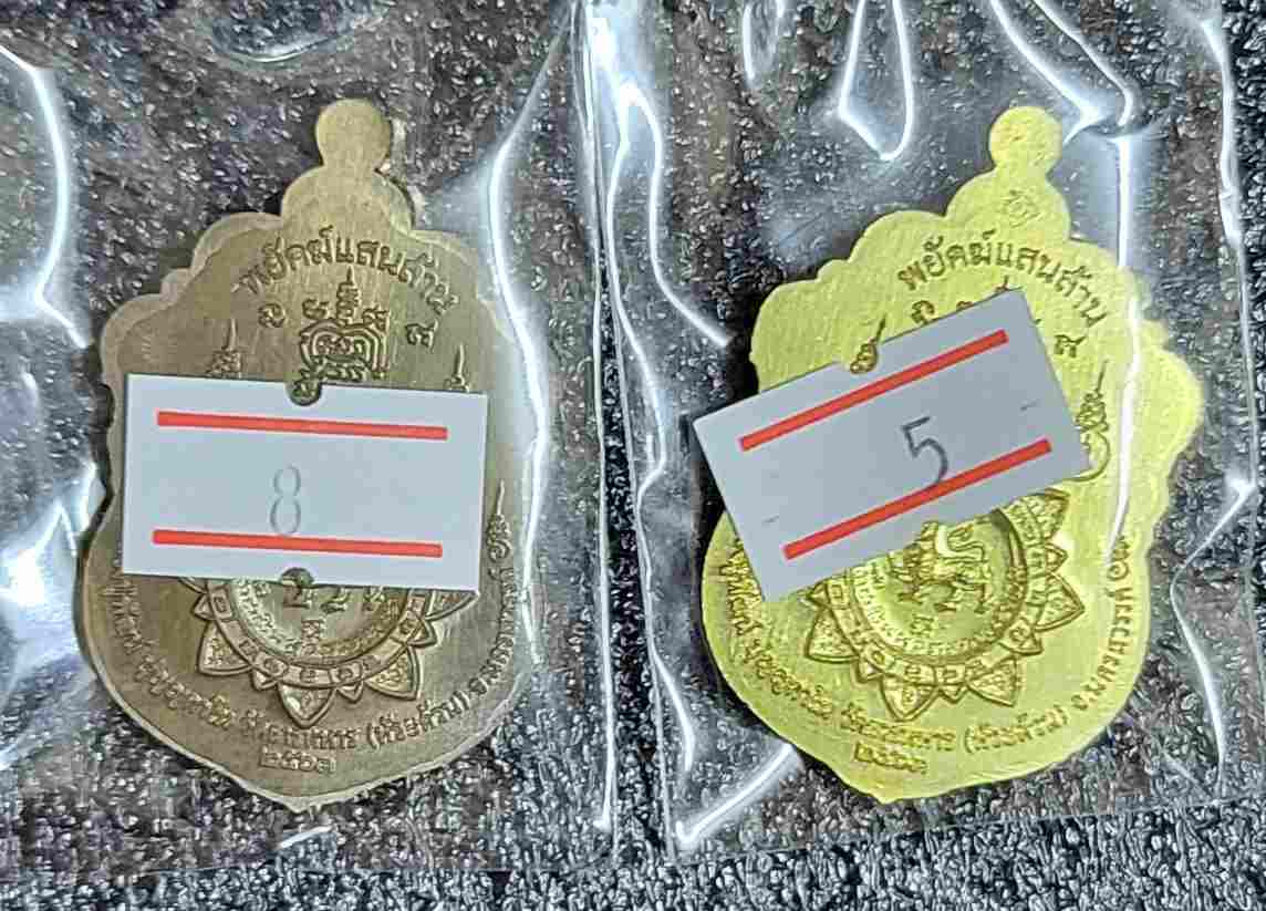 เคาะเดียวแดง เหรียญหลวงพ่อพัฒน์ รุ่นพยัคฆ์แสนล้าน เนื้อทองทิพลงยาราชาวดีสี่สี กลับเนื้อมหาชนวนลงยาสามสี รวม 2 เหรียญ |