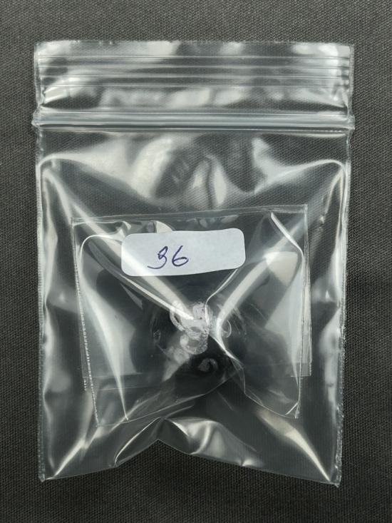 ลูกอมครั่งมนต์พระกาฬ หลวงพ่อวิชัย วัดหัวเด่น (เนื้อครั่งเดียวกับที่ติดหลังเหรียญมนต์พระกาฬ) หมายเลข "36" จารมือหมึกขาว |