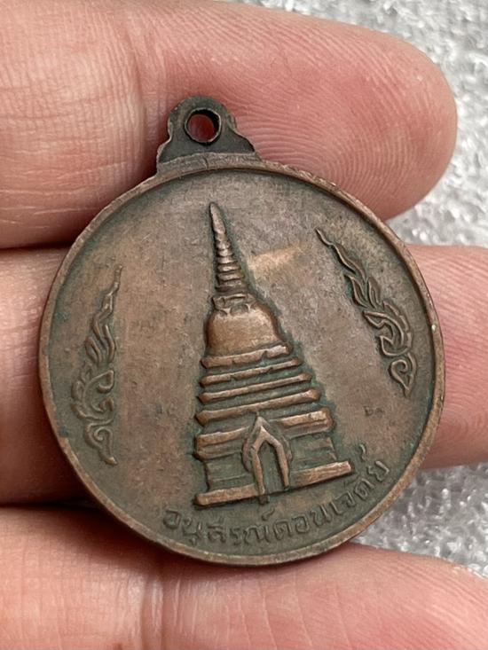 เหรียญสมเด็จพระนเรศวรมหาราช หลังอนุสรณ์ดอนเจดีย์ เนื้อทองแดงรมดำ ปี 2513 หลวงพ่อมุ่ยและเกิจสายสุพรรณร่วมปลุกเสก |