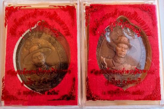 เคาะเดียวแดง.....(2)เหรียญสมเด็จพระเจ้าตากสินฯ หลังพญาครุฑ รุ่นกู้ชาติกู้แผ่นดิน ศาลสมเด็จพระเจ้าตากสินมหาราช จังหวัดจันทบุรี ปี 65 จำนวน 2 เหรียญ พร้อมกล่องเดิม |