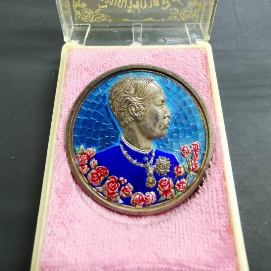 เหรียญ ร.5 วัดแหลมแค จ.ชลบุรี ปี36 เนื้อเงินลงยา สวยเดิมพร้อมกล่อง