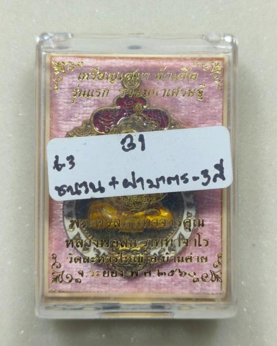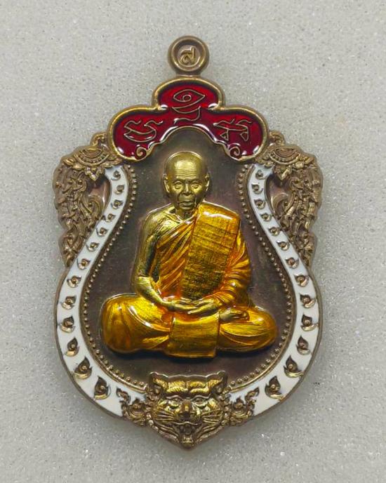 เสมาหัวเสือรุ่นแรก รวยมหาเศรษฐี(กรรมการ)เนื้อชนวน หน้าทองฝาบาตร ลงยา 3 สี หลวงพ่อสิน วัดละหารใหญ่ มีกล่อง แดงเคาะแรก |