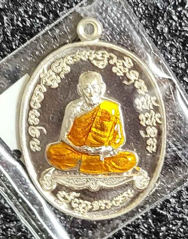 เคาะเดียวแดง เหรียญหลวงพ่อพัฒน์ รุ่นเจริญพร2 เนื้อพลายเงินลงยาจีวร |