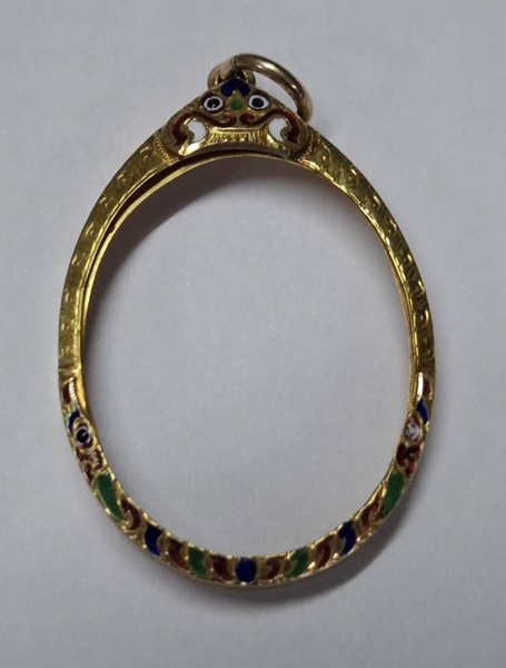 ***กรอบมือ2 ทองคำแท้ ลงยา สวยๆ*** ยกซุ้ม บน-ล่าง สำหรับ เหรียญรูปไข่ทั่วไป
