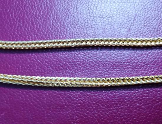 สร้อยคอชุบเศษทองเยาวราช สร้อยทองเหมือนแท้ ลายสี่เสา เส้นใหญ่ๆ ขนาด 5 บาท หัวมังกร ไม่ลอกไม่ดำ ฝีมือช่างจากเยาวราช ความยาว 20 นิ้ว (กท.89) |
