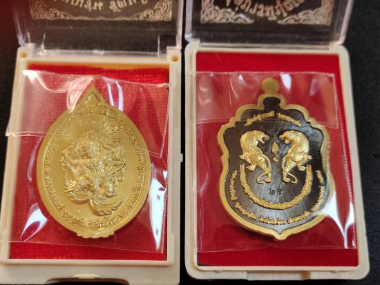 เหรียญพยัคฆ์คู่ กับเหรียญรัตนโชติ หลวงพ่อพัฒน์ วัดห้วยด้วน พื้นดำทั้งคู่ สวยมาก |