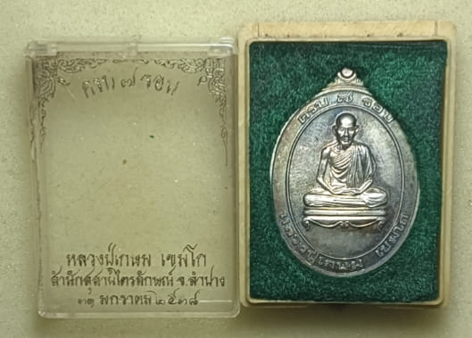 เหรียญสวยตามรูปครับ เนื้อกะหลั่ยเงินครับ กล่องหูชำรุดครับ |