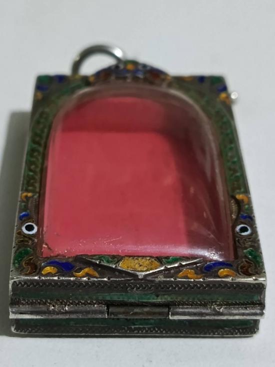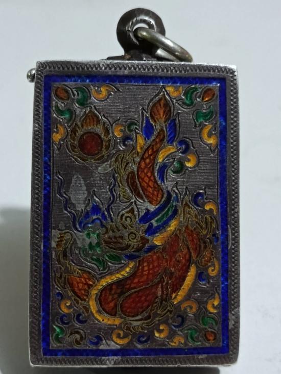 ตลับเงินแท้ลงยาเก่า ปิดหลังแกะลายมังกรเก่า.งานแกะมือ หัวสิงห์ใหญ่ ใส่พระสมเด็จหลวงปู่ภู วัดระฆังฐานคู่.หนาหนัก 30.46 กรัม เปลี่ยนห่วงให้ใหม่ใหญ่ขึ้นสมบูรณ์สนามใบละ 1,800 - 2,000 หมดแล้วครับ