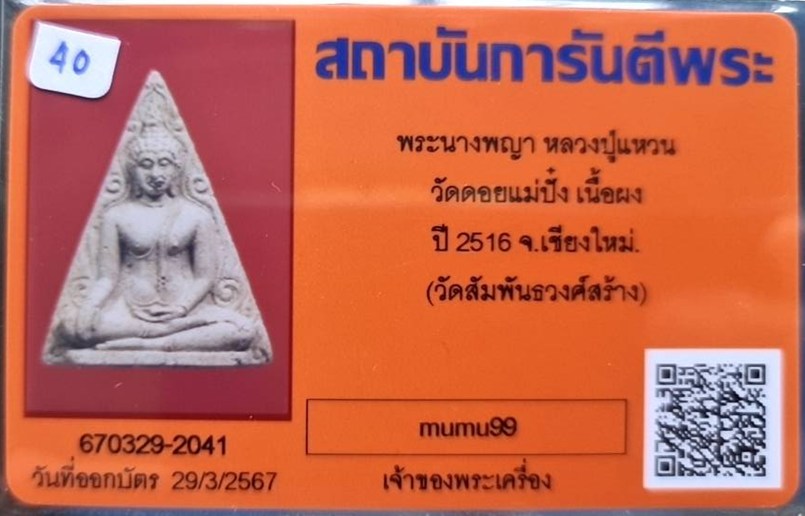 @## พระนางพญา.. ลป.แหวน วัดดอยแม่ปั๋ง จ.เชียงใหม่ (พิธีปลุกเสกใหญ่ใหญ่ วัดสัมพันธวงศ์ กทม.จัดสร้าง ) ปี2516 เนื้อผง พร้อมบัตรรับรอง สภาพสวยมาก รับประกันความแท้ตลอดชีพ พิธีปลุกเสกในวาระแรก ปี 2516 -วัต |