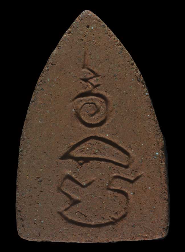 พระอรหังอังคีรส หลังปิ ยอดอุณาโลม หลวงปู่เฮี้ยง วัดป่า จ.ชลบุรี ปี 2495 เนื้อดินผสมผง พระยุคต้น |