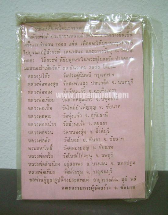 ปลุกเสกในอุโบสถวัดปากคลองมะขามเฒ่าเมื่อ 20 ธ.ค.2520 มีหลวงปู่โต๊ะ และเกจิอาจารย์ชื่อดังในยุคนั้น