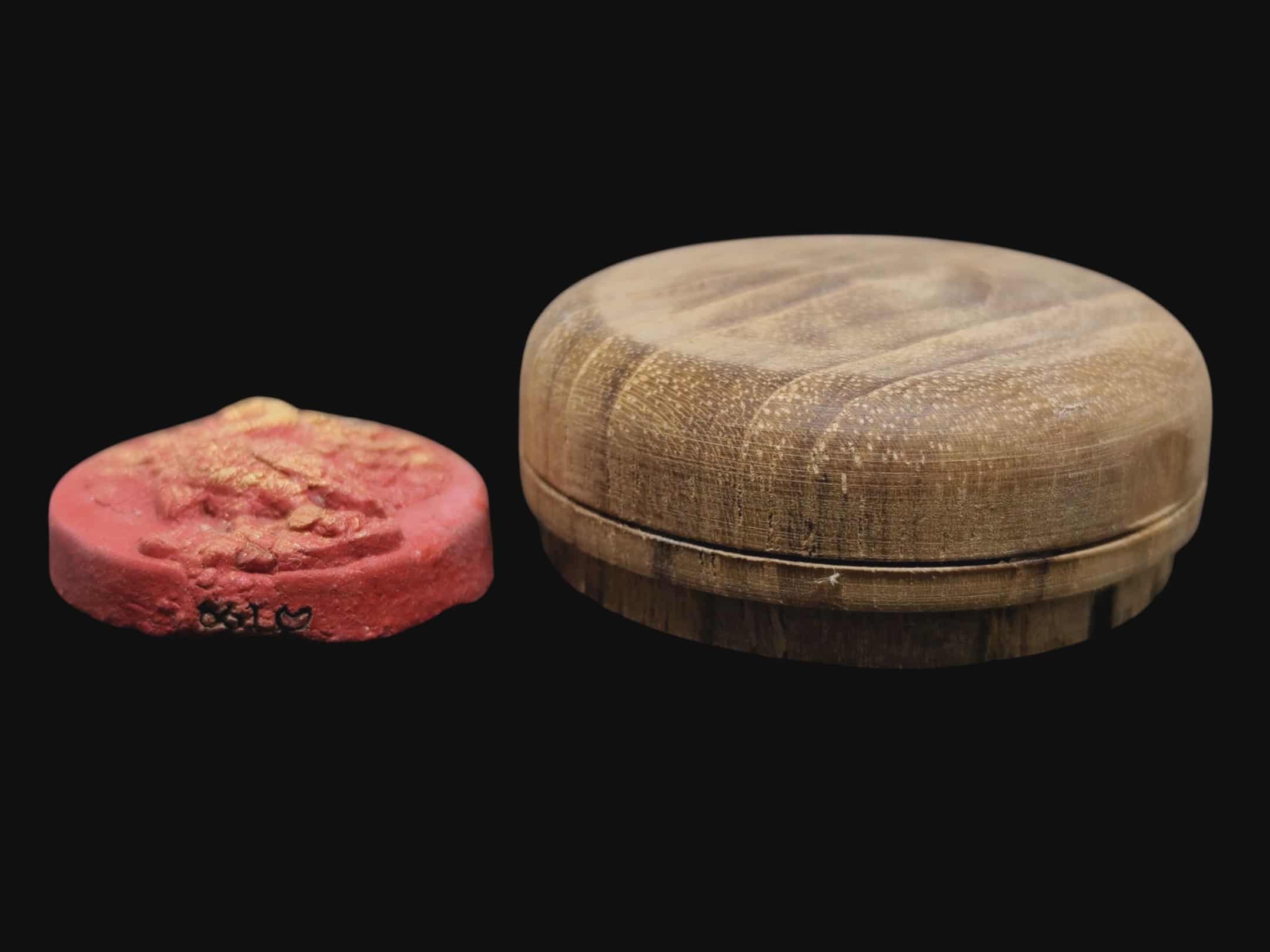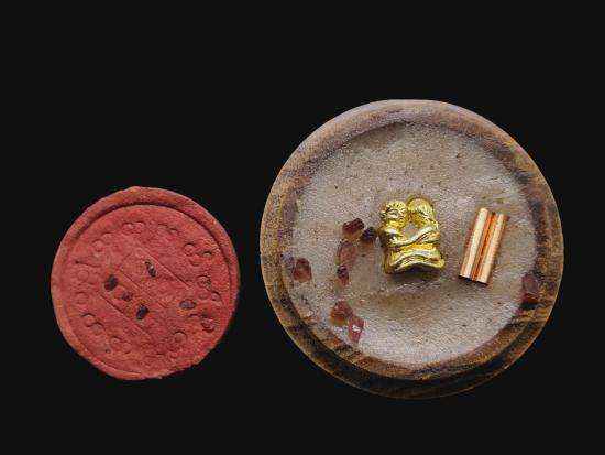 เคาะเดียวแดง พญายูงคำ รุ่นแรก เนื้อแดงปัดทอง และ ตลับไม้สีผึ้งเนื้อหอม รังผึ้งร้าง ขวางเดือนขวางตะวัน รุ่นแรก ฝังอิ่น ตะกรุด ในเมตตาบารมี เจ้าปู่จั่นต่า กาวิสาละ ครูบากฤษดา เมตตาเษก |