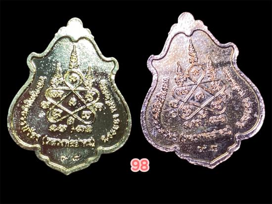 แยกชุดกรรม เลข๙๘ ผู้ชนะรับพระ 2 องค์ เหรียญโภคทรัพย์ ลพ สาคร ปี 2552 เนื้อกะไหล่ทอง ลงยาแดง+กะไหล่นาค ลงยาน้ำเงิน หายากมากเพราะสร้างไว้ในเฉพาะในชุดกรรมการที่มีเพียง 300 เท่านั้น เลข 98 มีเพียง 1 เดียว |