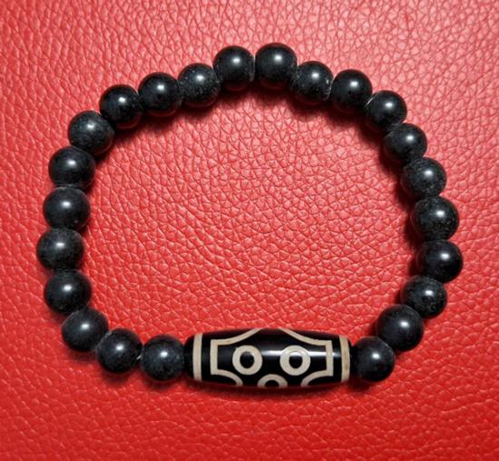 !!!!วัดใจ 9 บาท!!!! ประคำข้อมือหยกดำ ขนาด 8 มิล +หัวหินทิเบต 7 ตา ร้อยด้วยเอ็นยืด ขนาดฟรีไซด์ (กท.94) |