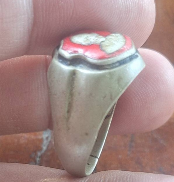 แหวนหลวงพ่อบุญมี วัดเขาสมอคอน ลพบุรี เนื้ออัลปาก้าลงยาแดง สภาพใช้พอสวยไซ2เซน.