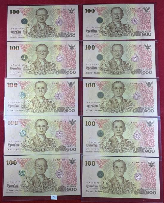 ธนบัตร 100 บาท รัชกาลที่9 ที่ระลึก84พรรษารัชกาลที่9 จำนวน 10 ใบ สภาพใหม่สวยตามรูป