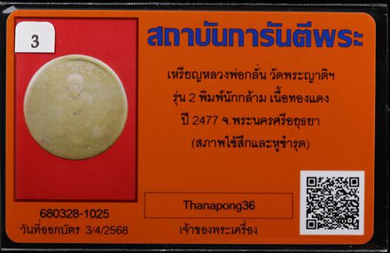วัดใจครับ เหรียญหลวงพ่อกลั่น วัดพระญาติการาม รุ่น 2 พิมพ์นักกล้าม เนื้อทองแดง ปี2477 จ.พระนครศรีอยุธยา สภาพน่ารัก พร้อมบัตรรับรองจีพระ |