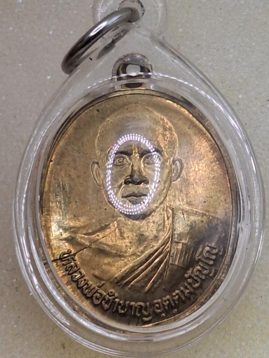 หรียญหลวงพ่อชำนาญ รุ่นถวายภัตตาหาร เนื้อทองเหลือง วัดบางกุฎีทอง ปี 2546 |