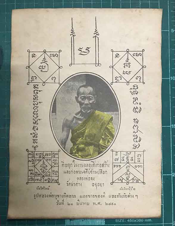 กระดาษยันต์หลวงพ่อจง วัดหน้าต่างนอก ปี 2491 สภาพสมบรูณ์