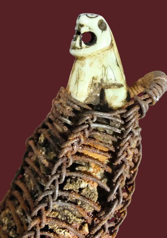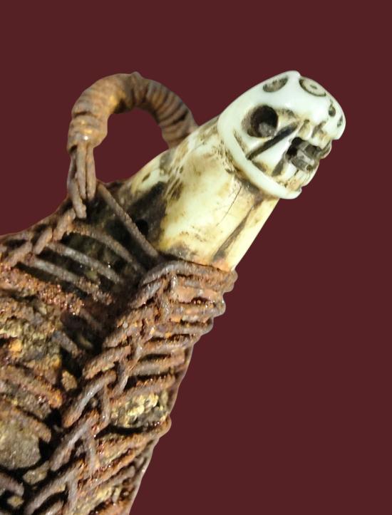 เขี้ยวหมูป่าตันแกะรูปเสือ พอกผงถักลวดเก่า |