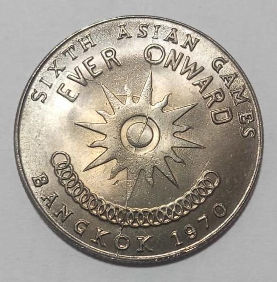 เหรียญ 1 บาท เอเชี่ยนเกมส์ ครั้งที่ 6 ในหลวงคู่ราชินี พ.ศ.2513 ในสมัยรัชกาลที่ 9 สภาพไม่ผ่านใช้แกะแบ่งจากถุง จำนวน 1 เหรียญ ครับ ((ปี้มพลาดตามรูปครับที่วงสีเหลืองไว้ครับ พอเจอน้อยครับ)) |