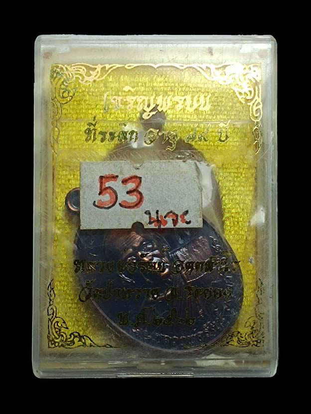 หลวงพ่อรัตน์ วัดป่าหวาย เหรียญเจริญพรบน ครึ่งองค์ เนื้อนวะโลหะ หมายเลข 53 ปี พ.ศ.2562 สวย กล่องเดิม |