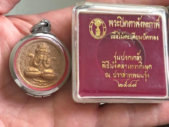 พระปิดตาพังพระกาฬ เนื้อผงไม้ตะเคียน ปัดทอง รุ่นปกเกล้า ปี 2549 พร้อมตลับพุก มีกล่องเดิม |