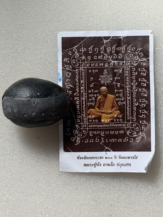 เบี้ยแก้ 200 ปี วัดละหารไร่ พร้อมใบฝอย ตอกโค๊ดและหมายเลข หลวงปู่บัว ปลุกเสก เคาะเดียว |