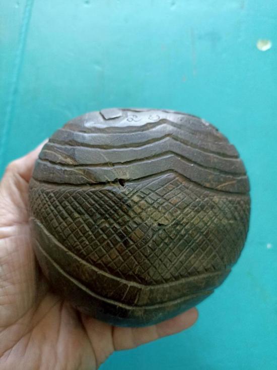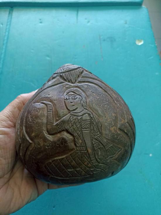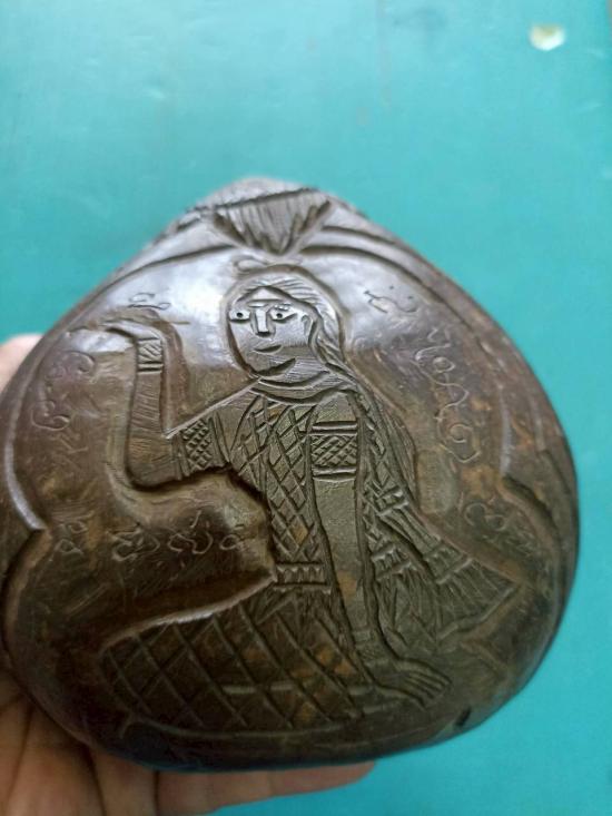 กะลาตาเดียว แกะสลักรูปนางกวัก ลงอักขระตามสายวิชา แก้ดวงตกด้านการเงิน แก้เคล็ดเสริมโชคลาภ ของเก่าเก็บมานาน |