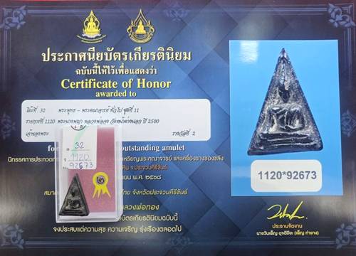 พระนางพญา พิมพ์หลังอุ หลวงพ่อจง วัดหน้าต่างนอก เนื้อผงใบลาน ปี2500 ติดรางวัลที่2 |