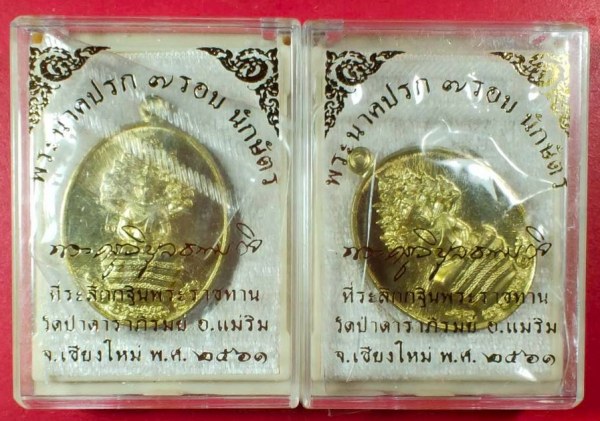 พระนาคปรก 7 รอบนักษัตร หลวงปู่บัวเกตุ ปทุมสิโร เนื้อทองฝาบาตร จำนวน 2 เหรียญ