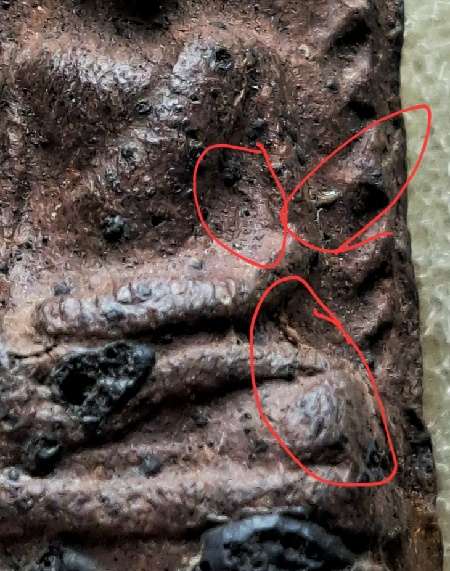 พระองค์นี้เผาแก่ไฟผิวออกม่วงเปลือกมังคุด มีหมัดไฟขึ้นถ้าเทียบกับพระกรุก็คล้ายกับพระกรุเตาทุเรียงตำหนิเส้นแตกในพิมพ์ชัดเจนเหมือนองค์อื่นๆ เช่าหาต้องระวังพระเลี่ยมปิดก้นเพราะพระพิมพ์นี้เป็นหนึ่งในหลายๆพิมพ์ที่นำไปกดสร้างใหม่ในปีถัดมาให้วัดชัยพระเกียรติแต่จะมีเลข 5 กดปั๊มอยู่ใต้ฐานมีทั้ง 5 ไทยและ 5 ภาษาล้านนาที่คล้ายไม้ยมก สำหรับของเก๊พิมพ์นี้ก็มีปลอมออกมาแล้วแต่เส้นแตก ตำหนิในพิมพ์ยังถอดไม่ได้เหมือนกับของจริง