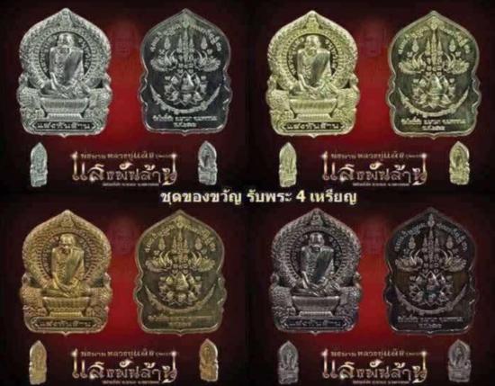 เหรียญนั่งพานรุ่นแรก ลป.แสง วัดโพธิ์ชัย นครพนม รุ่นแสงพันล้าน ชุดของขวัญ 4 เหรียญ(พิเศษยังไม่แกะกล่องยังไม่แกะซีล) ราคาจองชุดละ 500 บาท วันนี้วัดใจเคาะแรกแดงครับ |