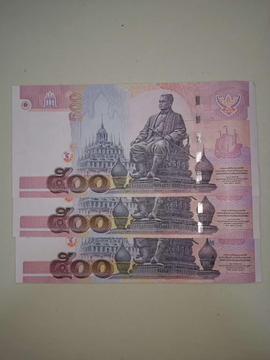 ธนบัตรรักาลที่ 9 ไม่ผ่านการใช้ ฉบับละ 500 บาท รวม 3 ฉบับ