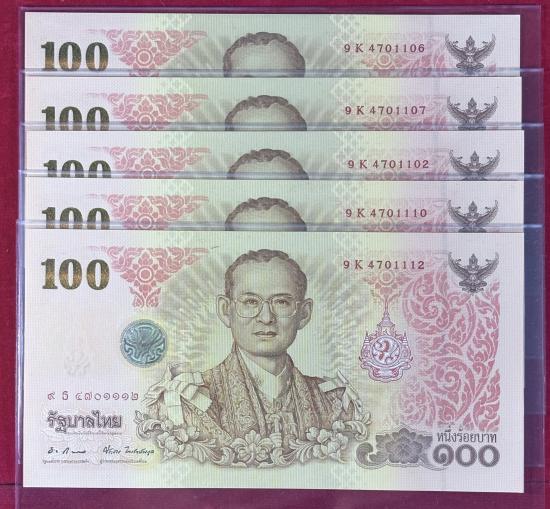ธนบัตร 100 บาท รัชกาลที่9 ที่ระลึก84พรรษารัชกาลที่9 จำนวน 5 ใบ สภาพใหม่สวยตามรูป