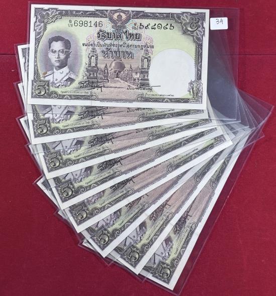 ธนบัตร 5 บาท แบบ 9 โทมัส จำนวน 8 ใบ สภาพใหม่เรียงเบอร์ สวยตามรูป