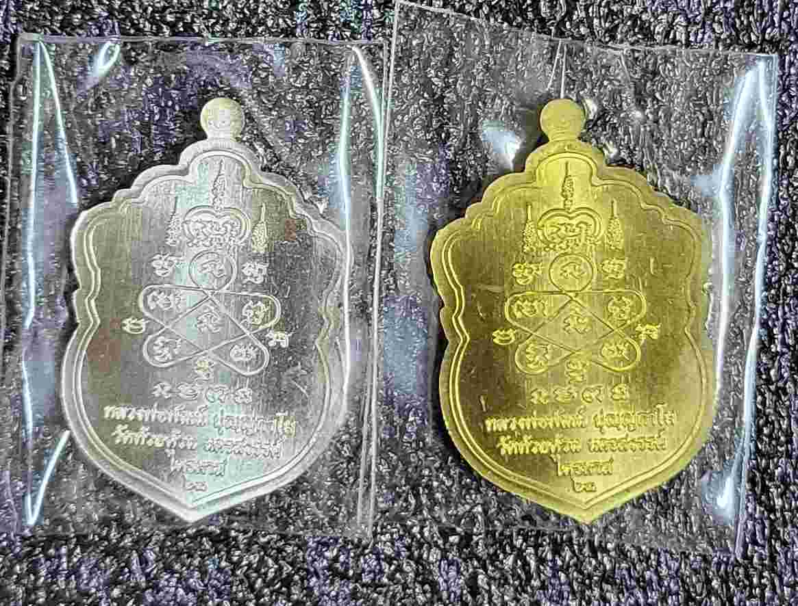 ข้อเดียวแดง เหรียญหลวงพ่อพัฒน์ รุ่นไตรมาส 63 พิมพ์เสมาคาบแก้ว รวม 2 เหรียญ |