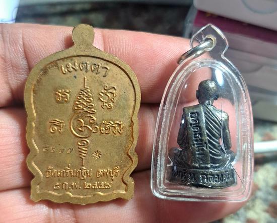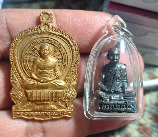 เหรียญนั่งพานหลวงพ่อเพี้ยน + รูปหล่อหลวงพ่อเพี้ยน 2 องค์เลี่ยมพลาสติก 1 องค์