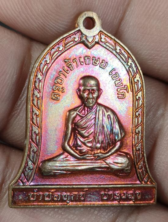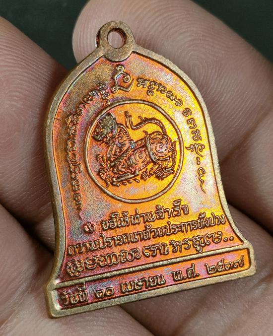 เหรียญระฆัง หลังสิงห์ รุ่นบำบัดทุกข์บำรุงสุข หลวงพ่อเกษม เขมโก จ.ลำปาง ปี 2537 เนื้อทองแดง |