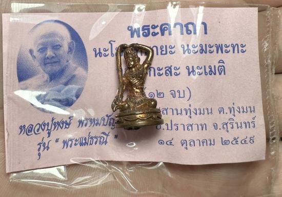 หลวงปู่หงษ์ พระแม่ธรณี รุ่นแรก เนื้อสำริด ปี 2549 พร้อมซองเดิม ตอกโค๊ตตอกหมายเลขใต้ฐาน |