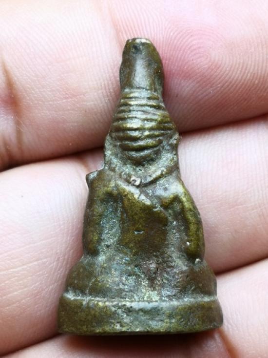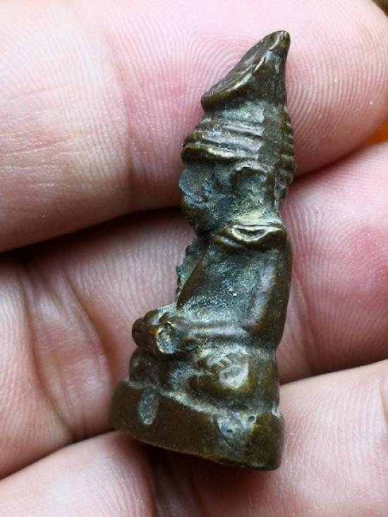 พระอุปคุตหล่อโบราณ พิมพ์หมวกฤาษี ถือดอกบัว ไม่ทราบที่ สภาพตามรูป ราคาเบาๆ